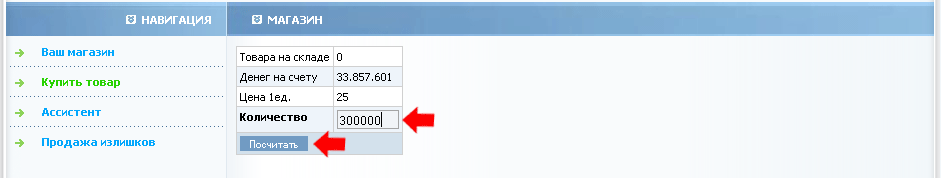 Товар продаётся каждый игровой день. Закупаем ровно 300000 единиц товара за 7,5 млн. голденов.